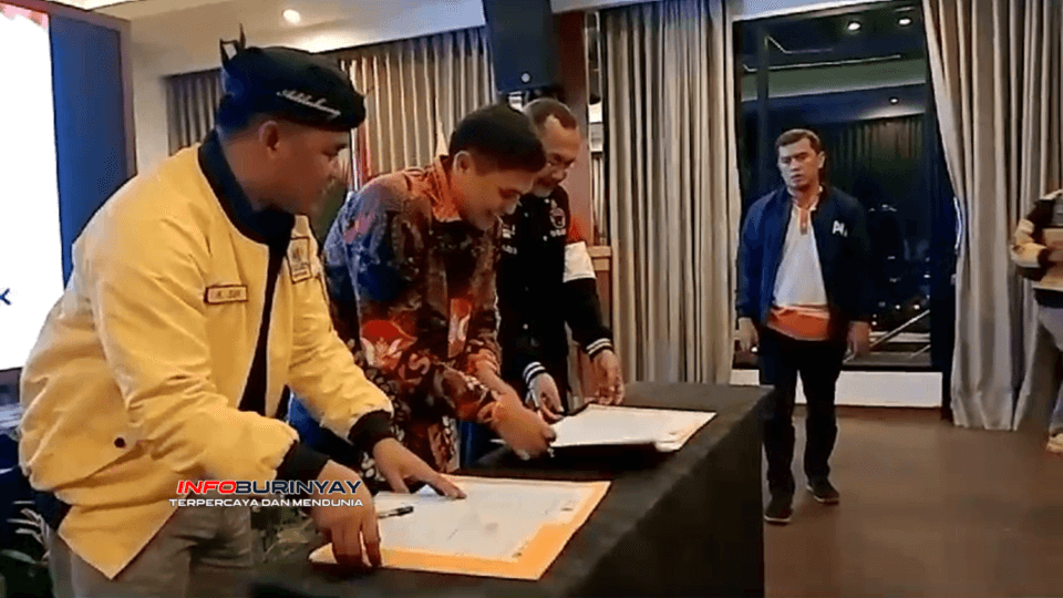Soreang, Info Burinyay – Tiga partai politik besar, yaitu Golkar, PKS, dan PDI Perjuangan, mengadakan deklarasi dan penandatanganan nota kesepakatan kerjasama politik tahun 2024. Acara tersebut berlangsung di Grand Sunshine Hotel, Soreang, Kabupaten Bandung, pada hari Minggu (7/7/2024).