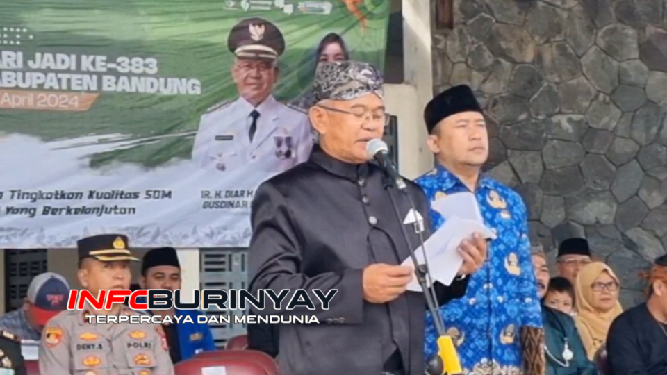 Rancaekek, Info Burinyay– Upacara peringatan Hari Jadi (HUT) Kabupaten Bandung ke-383 di Kecamatan Rancaekek berlangsung semarak, Sabtu (20/4/2024). Bertempat di Lapangan SMA Negeri 1 Rancaekek, Jalan Walini No. 55 Desa Bojongloa, upacara ini dipimpin oleh Camat Rancaekek, Ir. H. Diar Hadi Gusdinar, M.Si., mewakili Bupati Bandung, Dr. HM. Dadang Supriatna, S.Ip., M.SI.