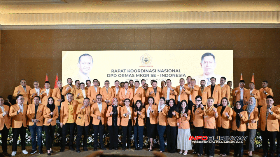 Jakarta, Info Burinyay — Suasana penuh semangat dan kebersamaan menyelimuti pelaksanaan Rapat Koordinasi Nasional (Rakornas) Ormas Musyawarah Kekeluargaan Gotong Royong (MKGR) yang digelar di Hotel Mulia, Jakarta. Kegiatan ini mempertemukan seluruh pengurus dan jajaran penting Ormas MKGR dari seluruh Indonesia, termasuk Majelis Tinggi, Dewan Penasehat, dan para Ketua DPD Provinsi.