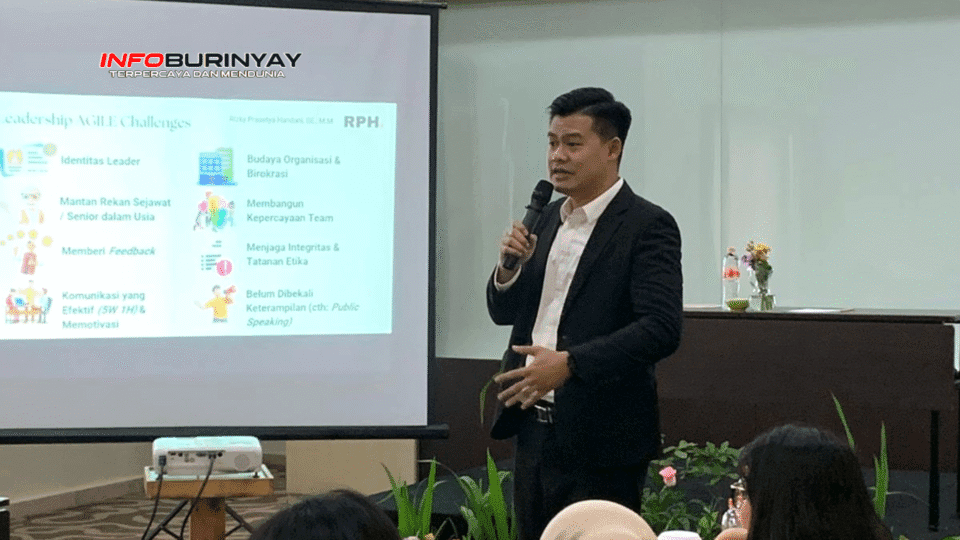 Bandung, Info Burinyay — Rizky Prasetya Handani, S.E., M.M. membuka sesi pelatihan kepemimpinan dasar bagi para manajer menengah Altiora Group dengan pendekatan inspiratif dan aplikatif. Ia menyampaikan pentingnya mengenal diri, berani berkomunikasi, serta membangun karakter kepemimpinan yang adaptif dan memberdayakan.