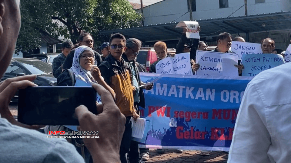 Bandung, Info Burinyay – Puluhan anggota Persatuan Wartawan Indonesia (PWI) se-Bandung Raya mendatangi kantor sekretariat PWI Provinsi Jawa Barat pada hari Jumat, 19 Juli 2024. Mereka menuntut PWI Pusat segera menggelar Konferensi Luar Biasa (KLB). Aksi ini dipicu oleh konflik internal di tubuh PWI Pusat. Konflik ini bermula dari permasalahan bantuan anggaran Uji Kompetensi Wartawan (UKW) dari Forum Humas BUMN yang tak kunjung selesai. Permasalahan ini semakin meruncing antara Ketua Umum PWI dan Dewan Kehormatan (DK) PWI Pusat.