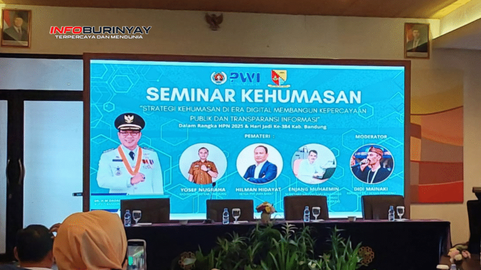 Soreang, Info Burinyai — Persatuan Wartawan Indonesia (PWI) Kabupaten Bandung mengadakan Seminar Kehumasan pada Senin, 20 Mei 2025. Kegiatan ini menyatukan puluhan peserta dari berbagai instansi, termasuk rumah sakit, dinas pemerintah, dan organisasi masyarakat.