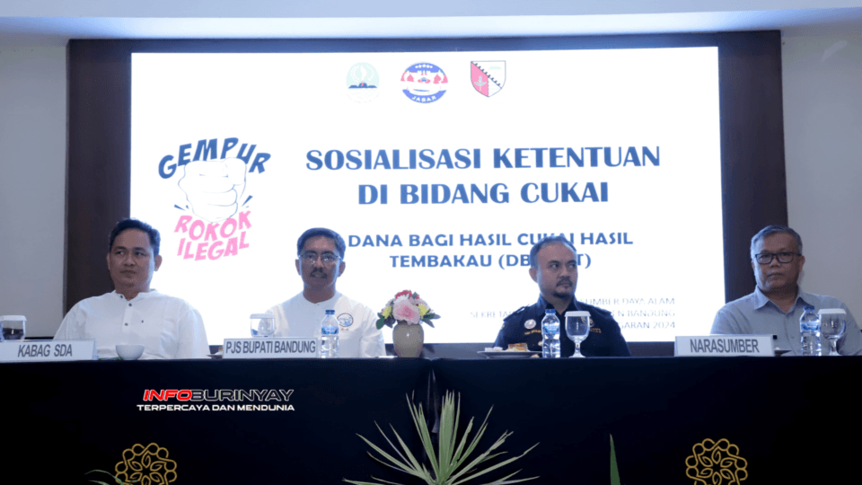 Soreang, Info Burinyay – Pemerintah Kabupaten (Pemkab) Bandung melaksanakan sosialisasi mengenai ketentuan cukai dengan tema “Gempur Rokok Ilegal” di Hotel Sunshine Soreang pada Selasa (22/10/2024). Kegiatan ini berlangsung selama dua hari hingga Rabu (23/10/2024) dan melibatkan berbagai unsur pemerintahan serta masyarakat.