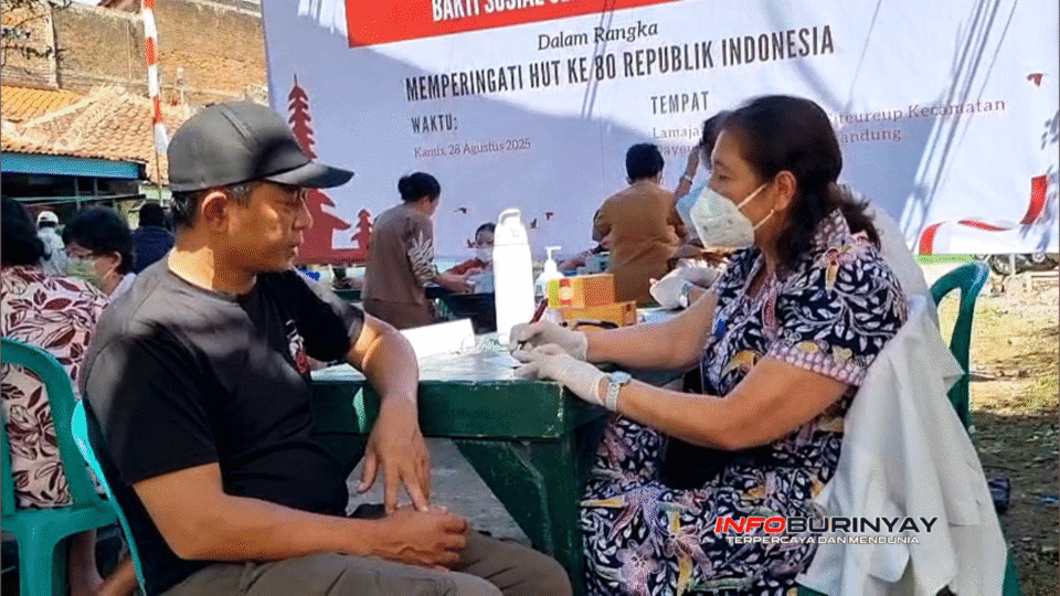 Dayeuhkolot, Info Burinyay – Ratusan warga dari lima RW di Desa Citeureup, Kecamatan Dayeuh Kolot, Kabupaten Bandung, antusias menghadiri kegiatan bakti sosial berupa cek kesehatan gratis. Acara ini berlangsung di Kampung Lamajang Peuntas pada Kamis, 28 Agustus 2025, dalam rangka memperingati HUT ke-80 Republik Indonesia.