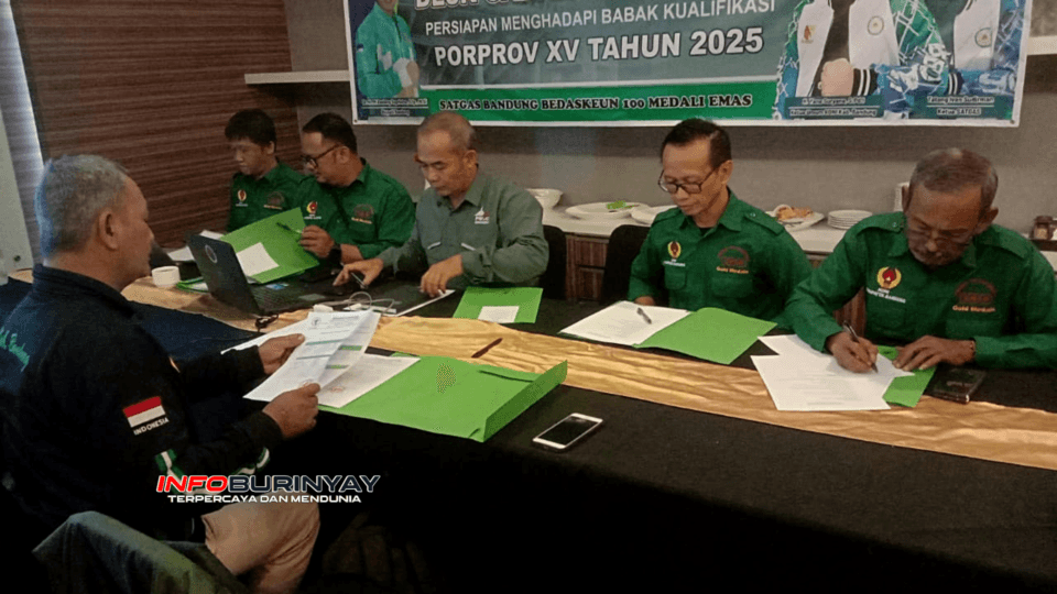 Soreang, Info Burinyay Komite Olahraga Nasional Indonesia (KONI) Kabupaten Bandung menggelar Desk Porprov XV guna mempersiapkan atlet menghadapi Babak Kualifikasi (BK) Pekan Olahraga Provinsi (Porprov) XV Tahun 2025. Seluruh pengurus Cabang Olahraga (Cabor) mengikuti kegiatan ini agar kesiapan atlet dan fasilitas pendukung lebih optimal.