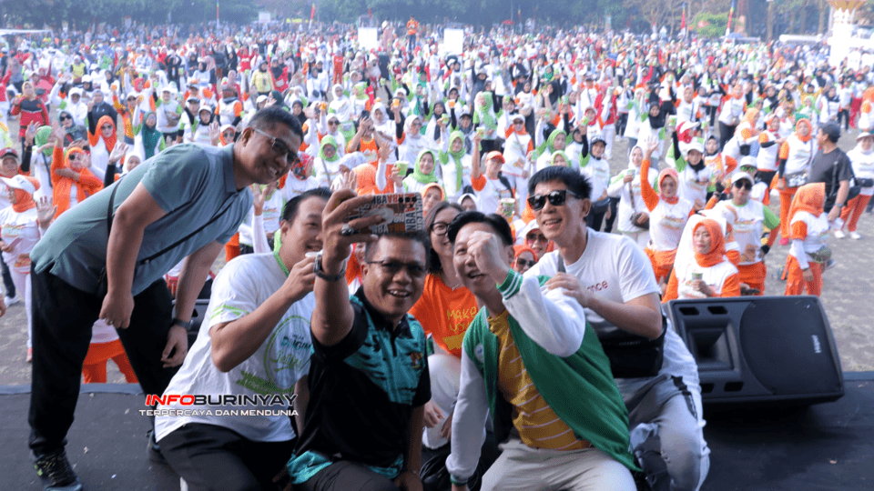 Soreang, Info Burinyay – Ribuan warga Kabupaten Bandung penuh antusias mengikuti kegiatan senam aerobik keluarga “Segar Dingin SD C-1000 Aksi Segar Massal Bodyguard Tubuh Biar Gak Ngedrop” yang berlangsung di Plaza Lapangan Upakarti, Komplek Pemkab Bandung, pada Minggu pagi (11/8/2024). Acara ini tidak hanya menjadi ajang olahraga bersama, tetapi juga sarana penting untuk mempererat silaturahmi dan meningkatkan imunitas.