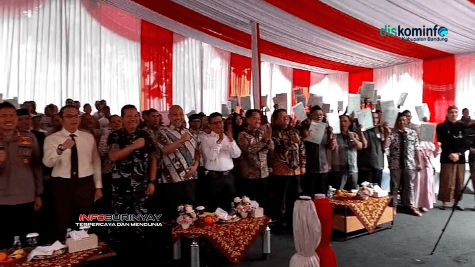 Soreang, Info Burinyay – Bupati Bandung Dr. HM Dadang Supriatna, S.Ip., M.Si., hadir dalam acara pembagian sertifikat Pendaftaran Tanah Sistematis Lengkap (PTSL) lintas sektoral dan sertifikat wakaf tahun 2024 yang digelar di halaman kantor ATR/BPN Kabupaten Bandung, Jumat 16 Agustus 2024. Acara ini merupakan bagian dari upaya pemerintah dalam memberikan kepastian hukum kepada masyarakat terkait kepemilikan tanah.