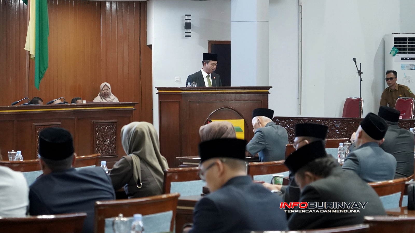 Soreang, Info Burinyay – Bupati Bandung, Dadang Supriatna, memaparkan Nota Keuangan Rancangan Peraturan Daerah (Raperda) APBD Kabupaten Bandung Tahun Anggaran 2026 dalam rapat paripurna DPRD, Senin (29/9/2025).