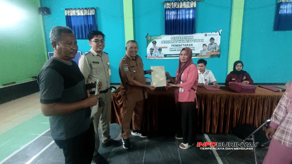 Ciparay, Info Burinyay — Sebanyak 72 warga Desa Babakan, Kecamatan Ciparay, akhirnya menerima sertipikat tanah elektronik secara gratis melalui Program Tanah Sistematis Lengkap (PTSL) 2025. Proses penyerahan berlangsung di Aula Desa Babakan, dengan antusiasme warga yang tinggi.