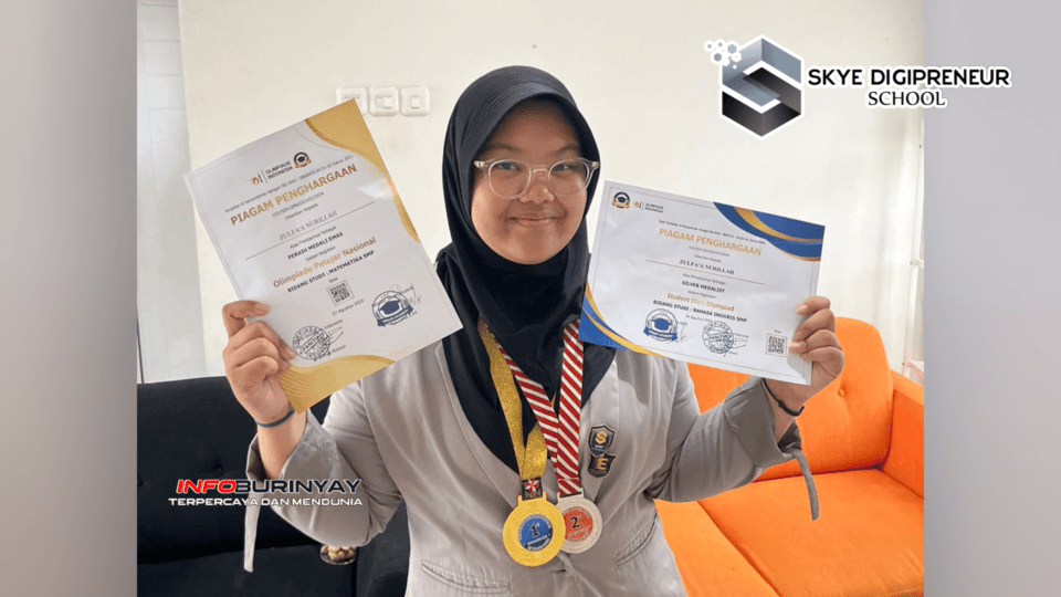 Bandung, Info Burinyay – Zulfa’a Nurillah, siswa kelas IX SMP Skye Digipreneur Rancaekek Kabupaten Bandung, Jawa Barat, berhasil mencatat prestasi gemilang di tingkat nasional. Ia memenangkan juara pertama dalam lomba matematika serta meraih posisi kedua dalam lomba Bahasa Inggris. Kedua lomba ini diselenggarakan oleh Smart Student, dengan pemenangnya diumumkan melalui Zoom Meeting pada Sabtu, 10 Agustus 2024.