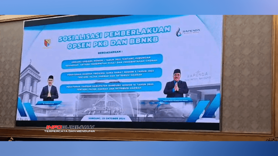 Soreang, Info Burinyay – Badan Pendapatan Daerah (Bapenda) Kabupaten Bandung menggelar sosialisasi untuk memperkenalkan kebijakan Obsen Pajak Kendaraan Bermotor (PKB) dan Bea Balik Nama Kendaraan Bermotor (BBNKB). Acara ini berlangsung di Hotel Sutan Raja, Soreang, pada Selasa, 29 Oktober 2024. Sekitar 400 peserta, termasuk kepala Organisasi Perangkat Daerah (OPD), camat, lurah, dan kepala desa dari seluruh Kabupaten Bandung, berpartisipasi dalam acara tersebut. Kehadiran mereka menunjukkan dukungan kuat terhadap kebijakan baru ini.