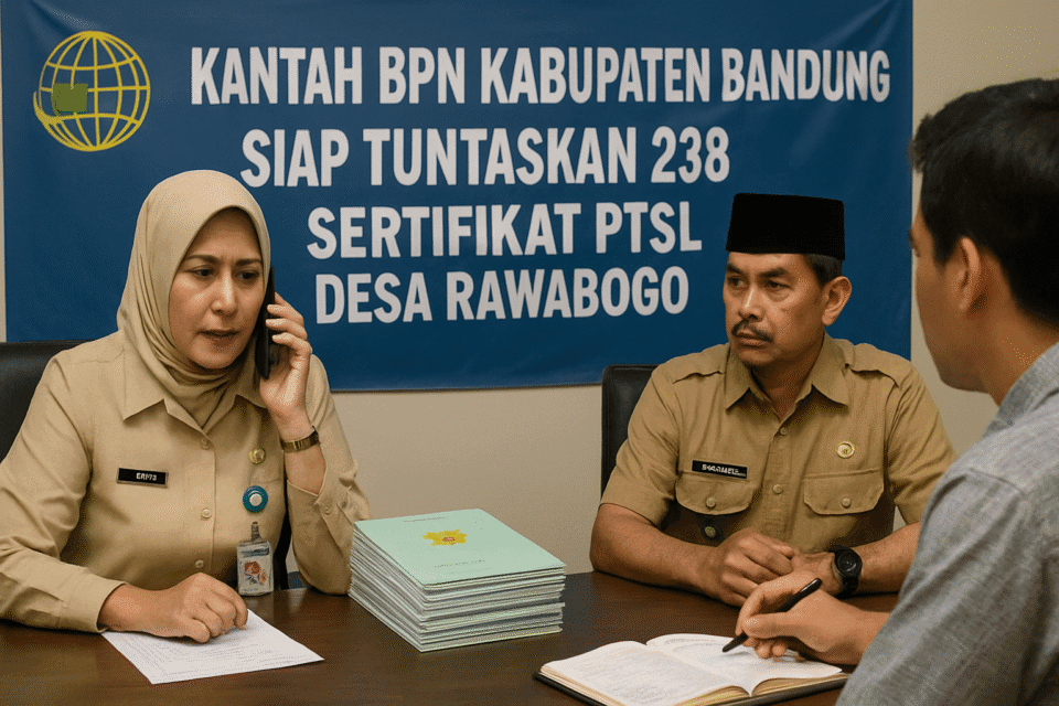 Soreang, Info Burinyay – Konflik soal pembagian sertifikat program PTSL di Desa Rawabogo memicu sorotan publik. Masyarakat menuntut kepastian, sementara dugaan pungutan liar memperkeruh situasi. Kantor Pertanahan (BPN) Kabupaten Bandung langsung merespons isu ini dan memastikan penyelesaian berjalan transparan.