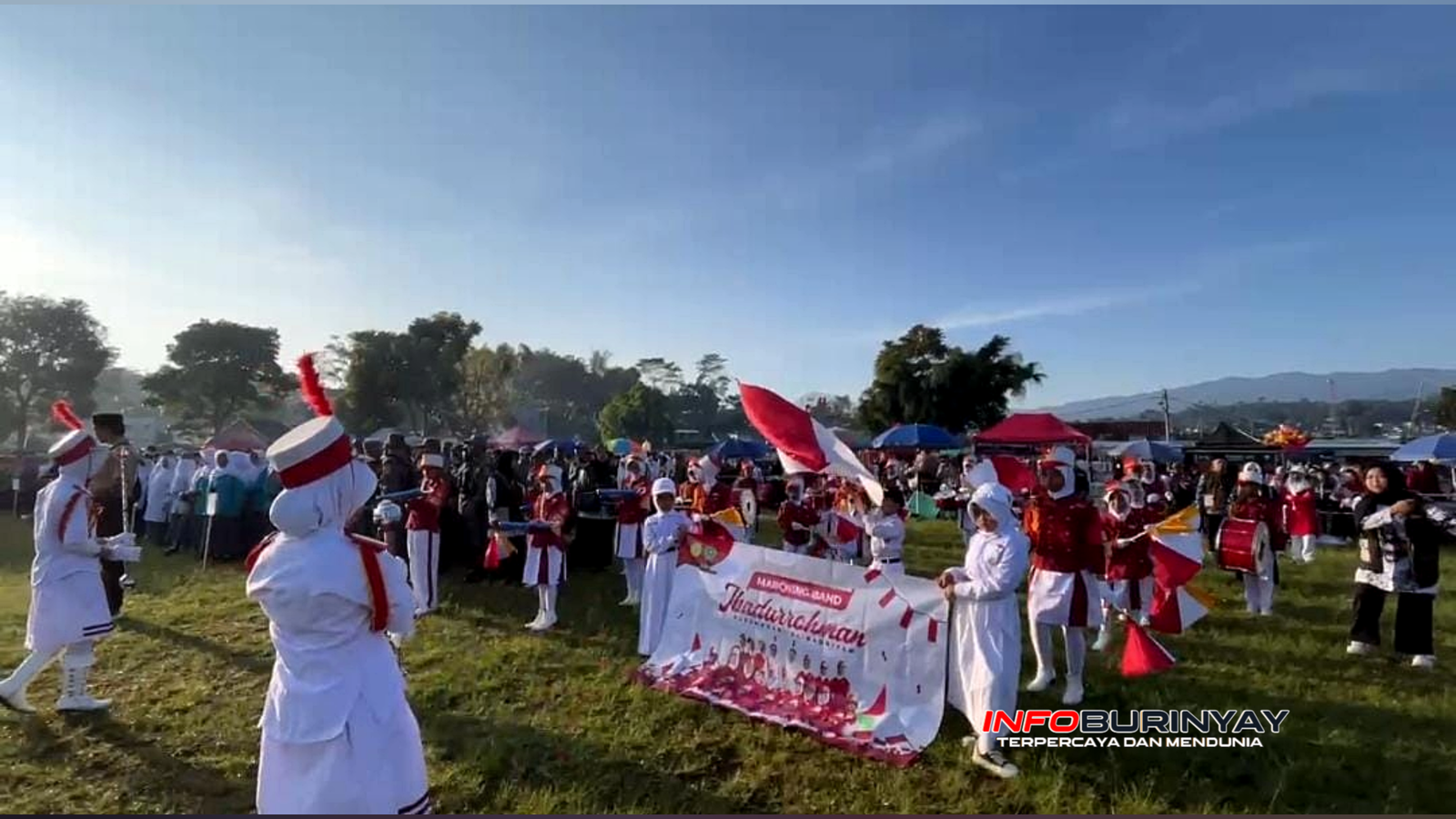Pasirjambu, Info Burinyay – Kecamatan Pasirjambu, Kabupaten Bandung, menggelar karnaval peringatan Hari Ulang Tahun ke-80 Republik Indonesia dengan meriah. Salah satu yang paling menyedot perhatian berasal dari Marching Band Madrasah Ibtidaiyah (MI) Ibadurrohman Kusumahani Al Badriyah Papakmanggu, Desa Cibodas. Para siswa menampilkan musik dan gerakan kompak sambil mengenakan kostum merah-putih yang melambangkan semangat nasionalisme.