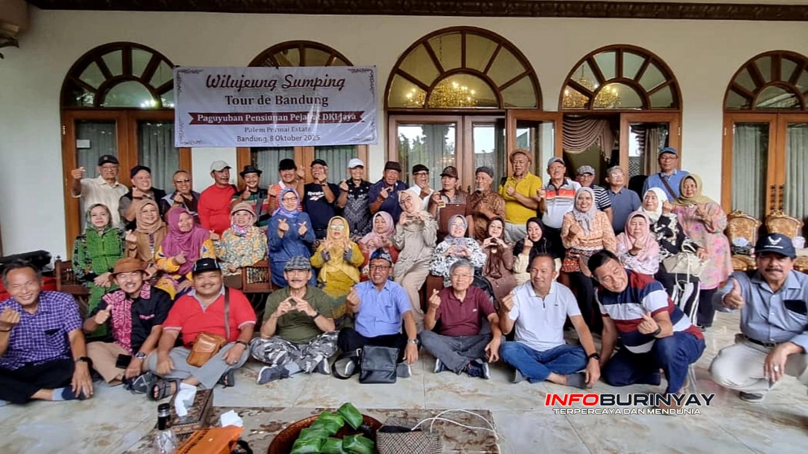 Bandung, Info Burinyay – Rombongan Paguyuban Pensiunan Pejabat DKI Jaya menggelar Tour de Bandung pada Rabu, 8 Oktober 2025. Kegiatan ini menjadi ajang silaturahmi antara para mantan pejabat Pemerintah Provinsi DKI Jakarta dengan rekan sejawat mereka di Jawa Barat. Rombongan singgah di kediaman H. TB. Yasep, BE., SH., MM. di Komplek Palem Permai Estate, Kota Bandung, dan disambut dengan penuh kehangatan oleh tuan rumah beserta keluarga.