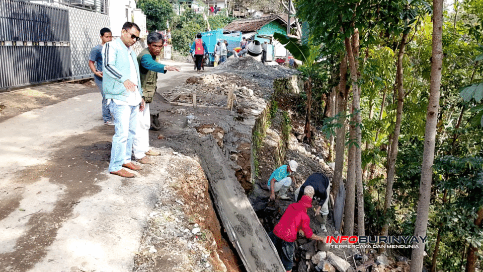 Pangalengan, Info Burinyay – Pemerintah Kabupaten Bandung bergerak cepat menangani risiko longsor yang mengancam warga Desa Tribakti Mulya, Kecamatan Pangalengan. Melalui Dinas Pekerjaan Umum dan Tata Ruang (DPUTR), Pemkab membangun Tembok Penahan Tanah (TPT) di Jalan Ciruntah – Pangalengan, Kampung Mekar Mukti, RW 11.