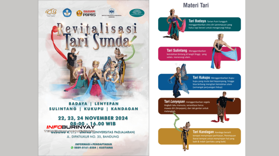 Bandung, Info Burinyay – Universitas Padjadjaran (UNPAD) Dipati Ukur menjadi pusat perhatian dengan pelaksanaan Workshop Revitalisasi Tari Sunda pada 22 hingga 24 November 2024. Kegiatan ini bertujuan untuk menghidupkan kembali seni tari tradisional Sunda yang hampir hilang. Selain itu, workshop ini menjadi bagian penting dari upaya pelestarian budaya lokal yang dilakukan melalui kolaborasi lintas sektor.